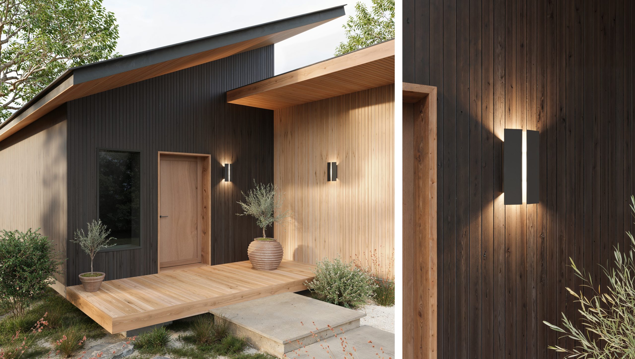 The Rima Outdoor sconce is an illuminating example of functional minimalism. The shade is distilled down to a few essential materials composing a sleek modern design that emits a beautiful quality of light.